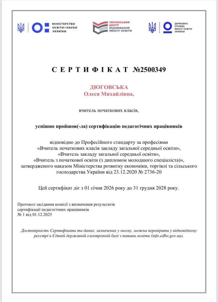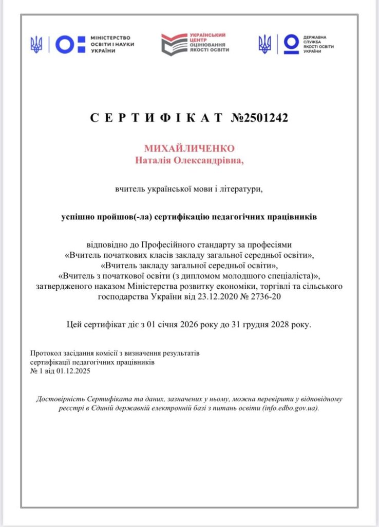 Наші педагоги успішно пройшли сертифікацію та позачергову атестацію, підтвердивши високий рівень фахової майстерності, відданість професії та прагнення до розвитку ![]()
