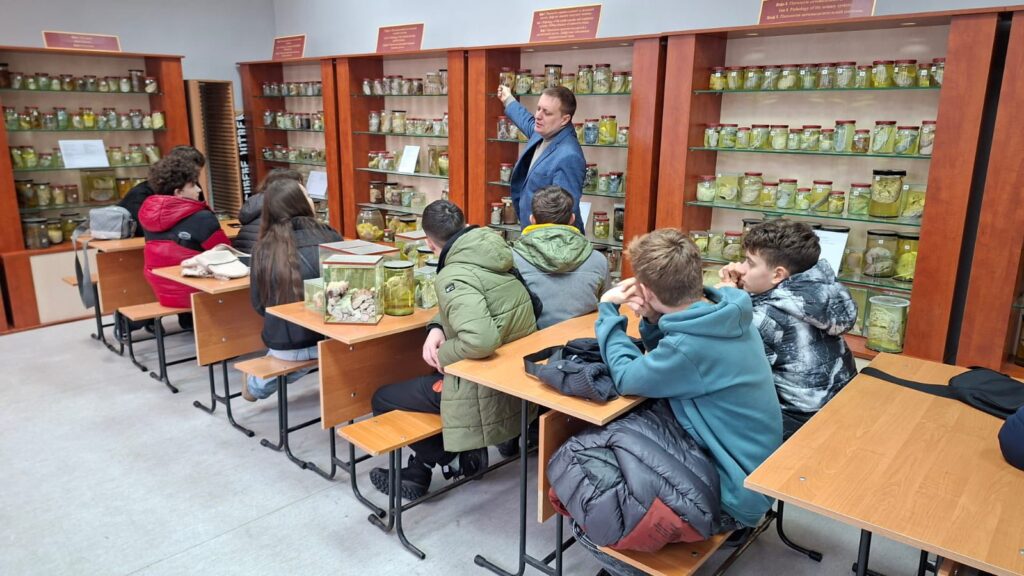 Професор Москаленко Роман Андрійович провів екскурсію, що поєднувала науку та філософію життя. Учні змогли побачити, як тонка межа між здоров’ям і хворобою відкриває розуміння цінності життя та величезної відповідальності професії лікаря.
